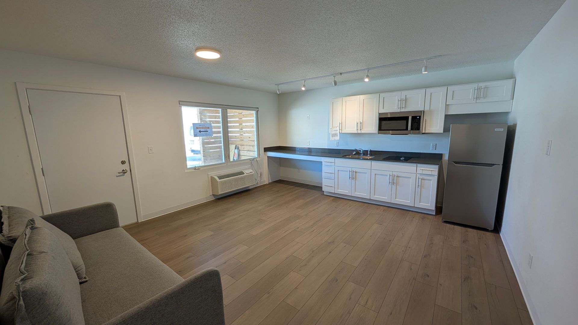 Welcome to Falls Edge Studios in Cedar Falls, IA! Our Studio E apartment offers a modern and convenient living space with all the essentials you need. This pet-friendly studio comes fully furnished with stainless steel appliances, a comfortable Murphy bed, and luxurious quartz countertops. Enjoy the convenience of LVP flooring, a TV, and a private patio to relax and unwind. Experience a stylish and hassle-free lifestyle at Falls Edge Studios. Contact us today to schedule a tour of Studio A!